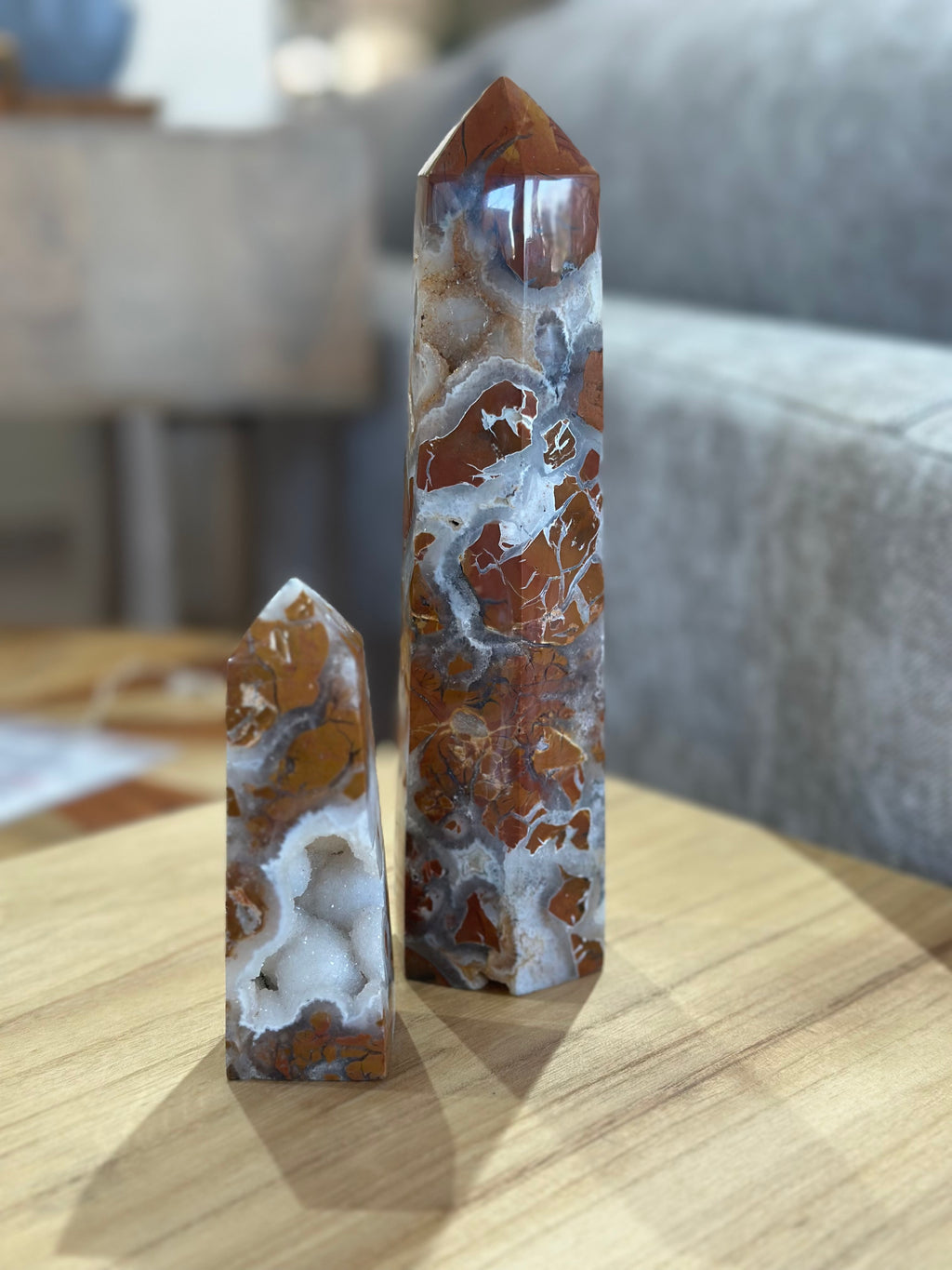 Estimulación y Vitalidad: Se cree que el jaspe brechado es un estimulador de energía que despierta el entusiasmo y la vitalidad, contrarrestando la apatía. Es especialmente útil para quienes necesitan un impulso para terminar proyectos.